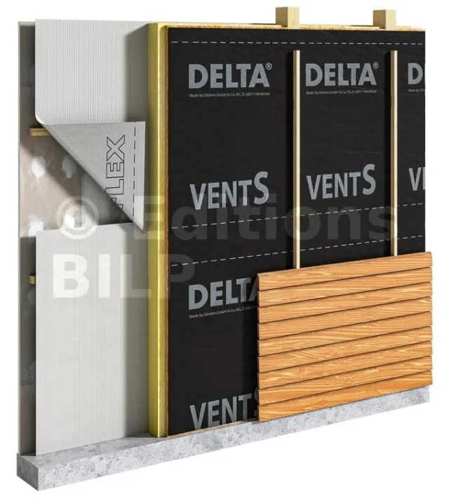 - En façade : pare-pluie pour bardages ventilés à joints fermés.