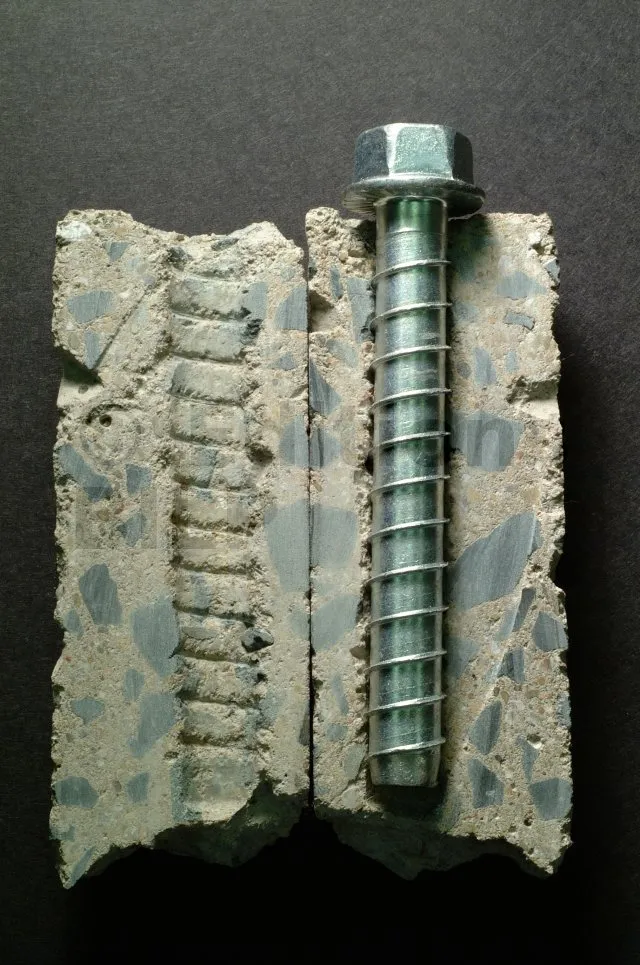 - Fixation selon le principe de verrouillage de forme : le filet de la vis taraude le support d’ancrage lors du serrage de celle-ci.
