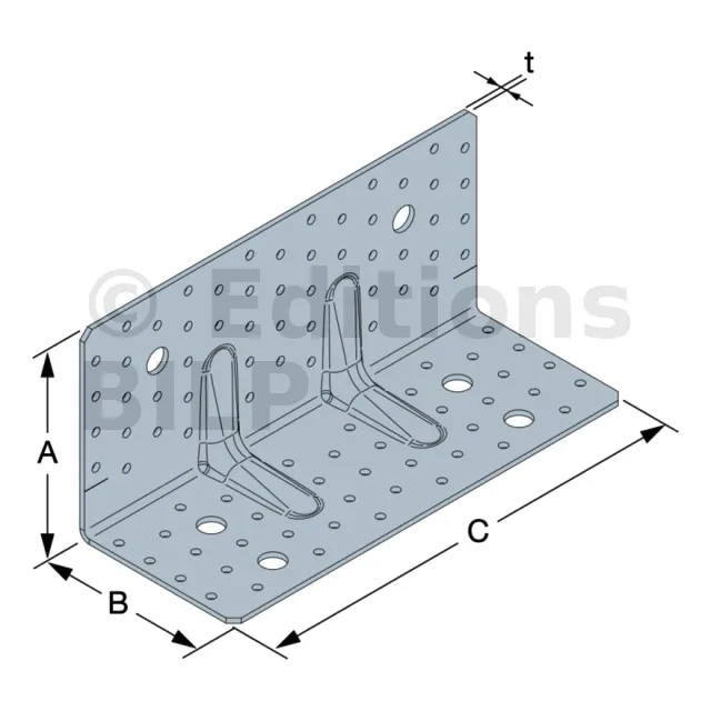| Références | Dimensions [mm] | Perçages Aile A | Perçages Aile B | |||||