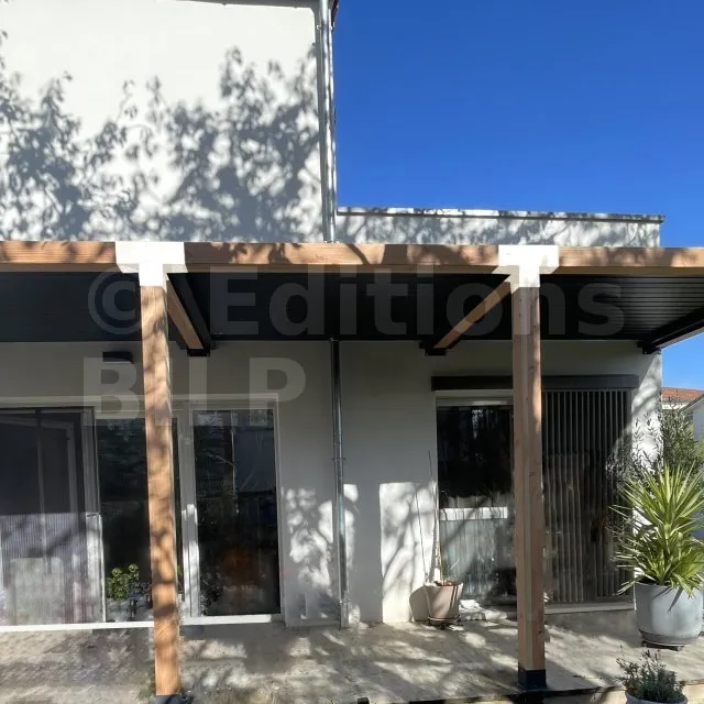Il permet de raccorder une poutre de 90x90mm perpendiculairement à un chevron de 90x90mm, le tout étant supporté par un poteau vertical de 90x90mm.