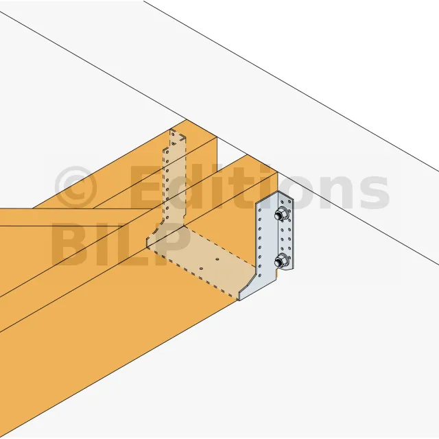 - Assemblage et flexion : Les pannes intermédiaires assemblées à l’aide de ces sabots bénéficient d’une répartition homogène des charges, réduisant les points de flexion et augmentant la durabilité de la charpente.