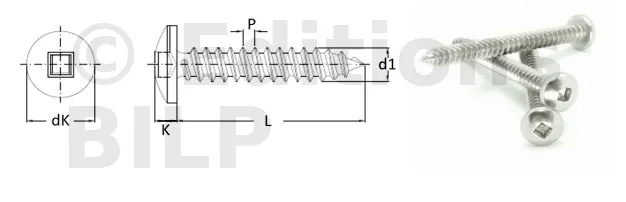 - Facilité d’utilisation : Le design de l’empreinte carrée permet une insertion facile du tournevis dans la tête de la vis, ce qui simplifie le processus d’installation.