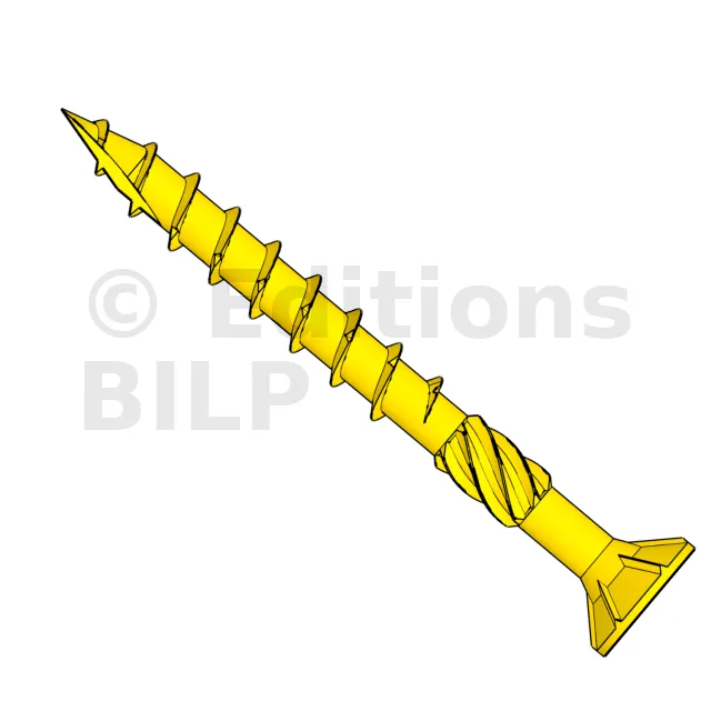 - Tête fraisée avec des rainures sous tête pour une finition sans éclat,