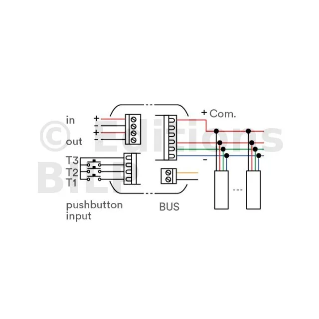 - Il est possible de réunir des dispositifs esclaves version BUS (maximum 40) pour répéter les fonctions du maître