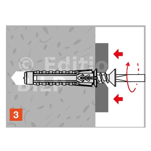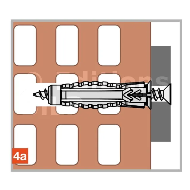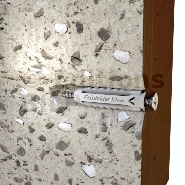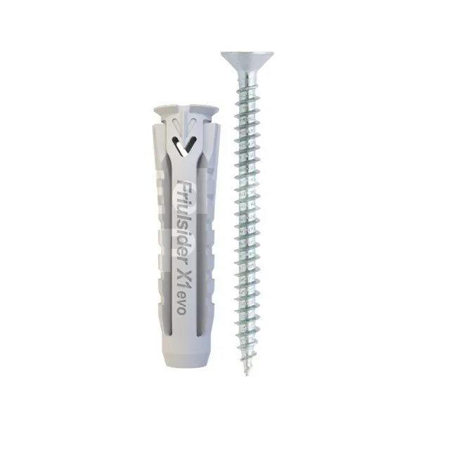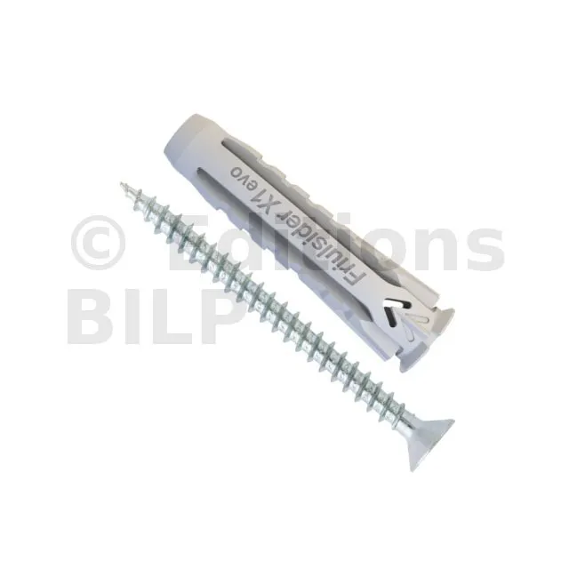 La cheville nylon universelle X1 evo, permet une fixation optimale d’éléments sur tous types de supports plein ou creux, notamment sur plaque de plâtre. Avec tous types de vis : vis filetage bois, vis filetage pas métrique. Avec un maintien large et stable grâce au 4 segments formant une rosace en arrière face du support lors de la pose.
