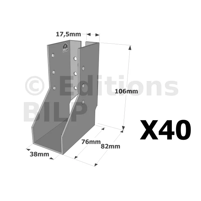 On admet une tolérance de 2 mm maximum entre l‘épaisseur du bois et la largeur du sabot. Exemple : un sabot plié à 76 mm peut porter une épaisseur de bois de 74 mm.