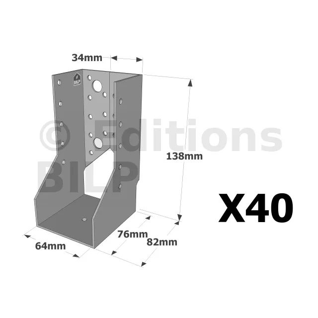 On admet une tolérance de 2 mm maximum entre l‘épaisseur du bois et la largeur du sabot. Exemple : un sabot plié à 76 mm peut porter une épaisseur de bois de 74 mm.