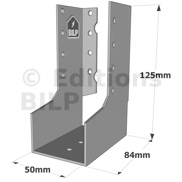 - Robustesse et discrétion : Grâce à leur conception en acier galvanisé, ces sabots sont robustes et résistent aux conditions climatiques difficiles. Les ailes intérieures permettent une intégration discrète, préservant l’esthétique de la structure.