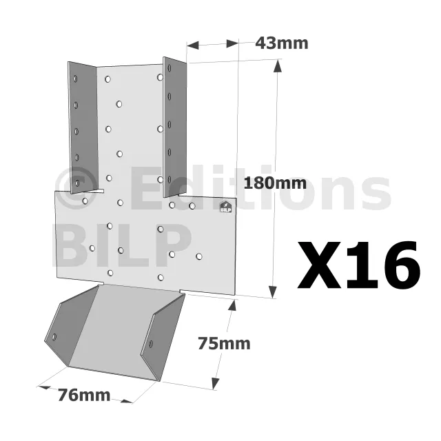 - Poutres lisses : Ces sabots inclinés permettent une fixation sûre et flexible des poutres lisses, essentielles pour la répartition des charges dans une structure en bois.