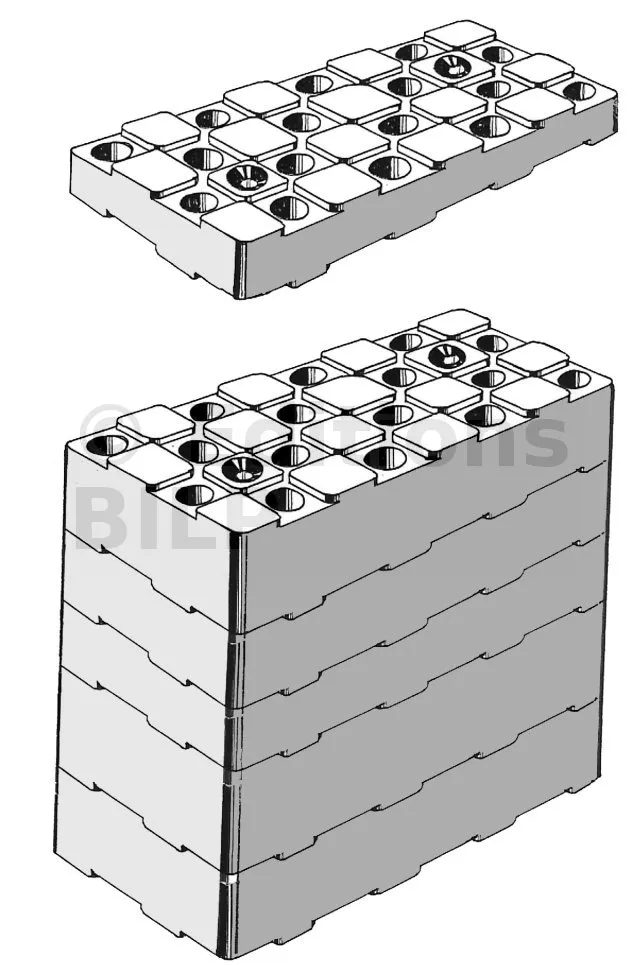 Réalisé en plastique régénéré, empilable, conseillé de visser ou clouer après réglage