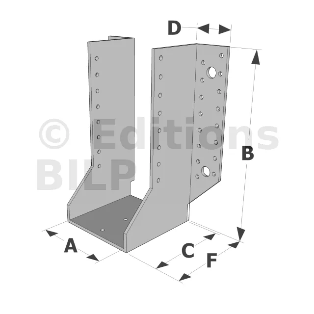 Les sabots GSE en acier galvanisé offrent une flexibilité grâce à des largeurs au choix selon les plages indiquées. Cette caractéristique permet de s’adapter parfaitement aux dimensions spécifiques des éléments de construction, garantissant une compatibilité optimale et une fixation stable.