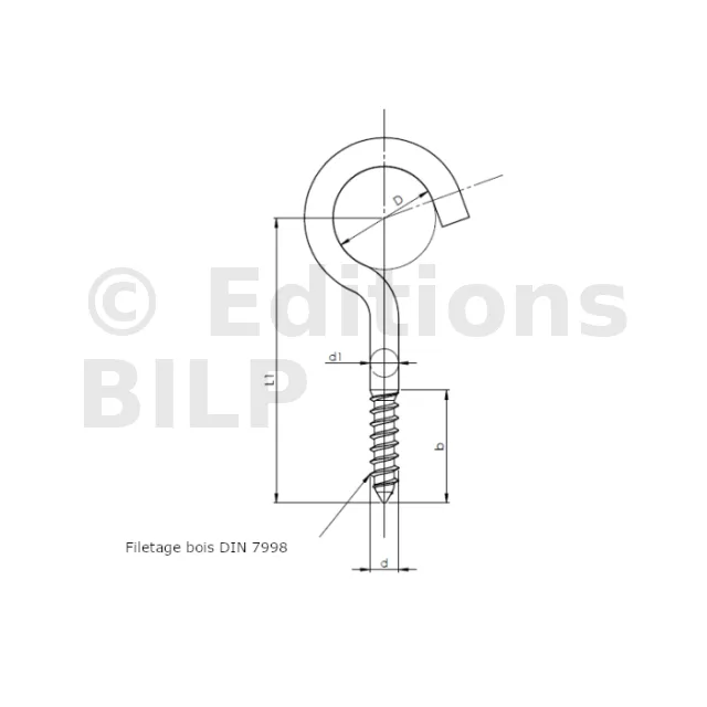 Piton ouvert à filetage bois - Réf. 07064507002