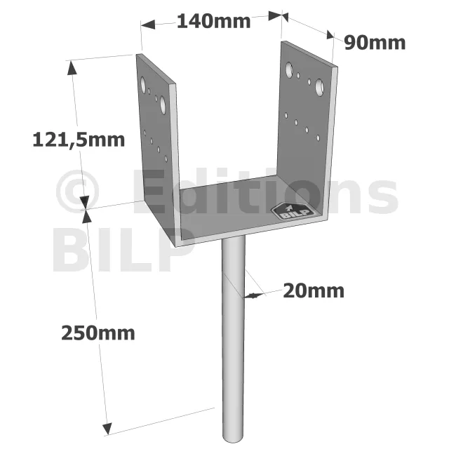 Pieds de poteau en U à sceller - Réf. PPD140/90G-R