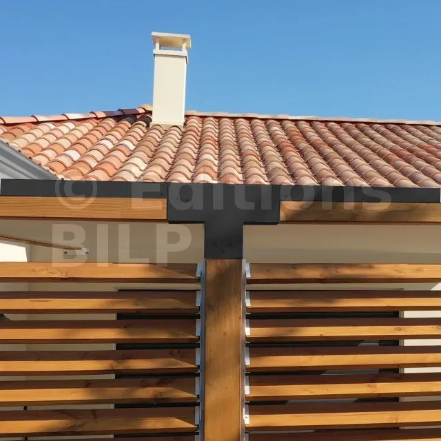 Il permet également la connexion d’une longue poutre de 90x90mm à un poteau intermédiaire de 90x90mm.