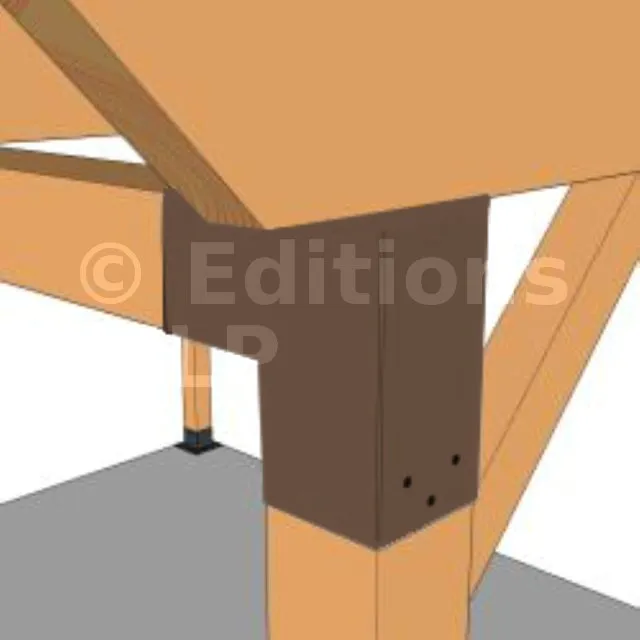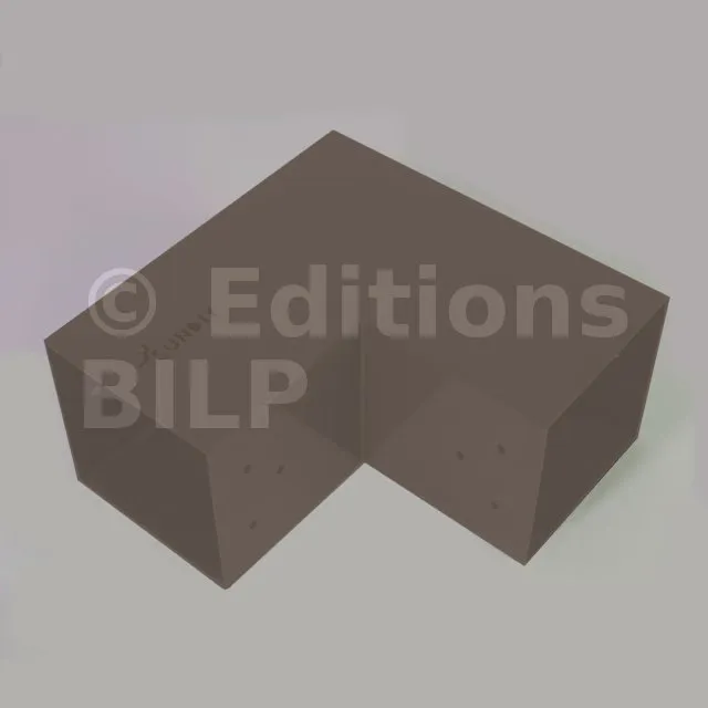 Il est utilisé dans un angle extérieur. Ce connecteur va permettre de raccorder une grosse poutre 120x120mm perpendiculairement à une autre poutre ou à un poteau vertical 120x120mm.