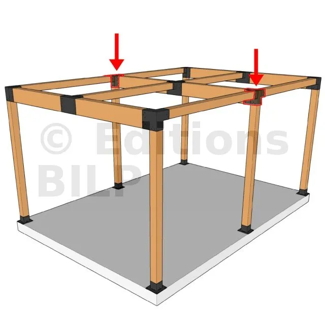 Il permet de raccorder deux poutres 120x120mm perpendiculairement à une grosse poutre 240x120mm, le tout étant supporté par un poteau vertical 120x120mm.