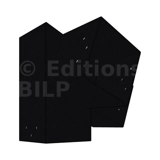 Il est utilisé dans un angle extérieur. Ce connecteur va permettre de raccorder une poutre 120x120mm à une poutre 120x120mm avec une pente de 20°, le tout étant supporté par un poteau vertical 120x120mm.