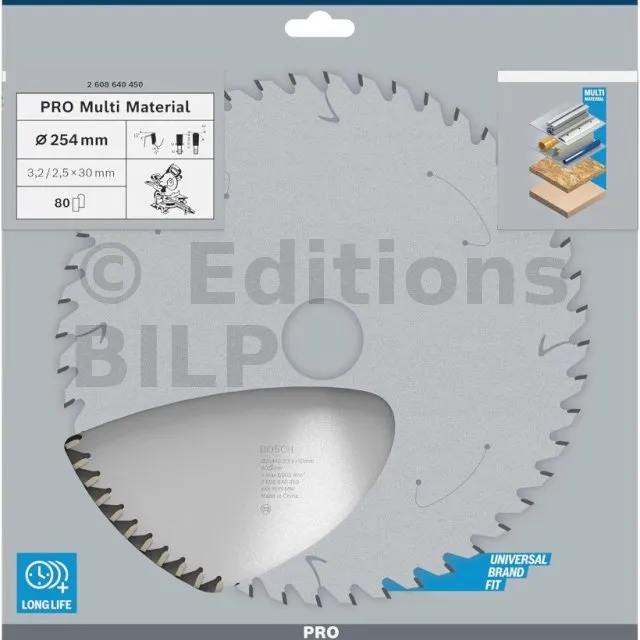 Lame de scie circulaire PRO 254 x 30 x 3.2 mm - 80 dents - Multi matériaux - Réf. 2608640450