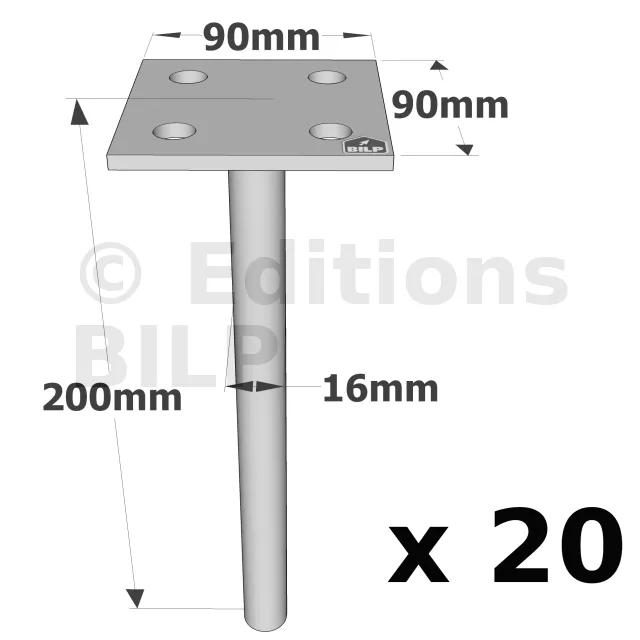 Pieds de poteau à sceller simple platine - Réf. PPSP90_20