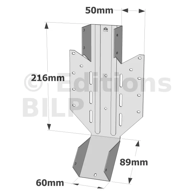 - Les trous oblongs permettent le clouage en biais si nécessaire.