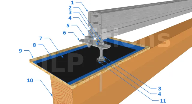 - Porteur : bois massif, bois composite, lamellé collé, acier.