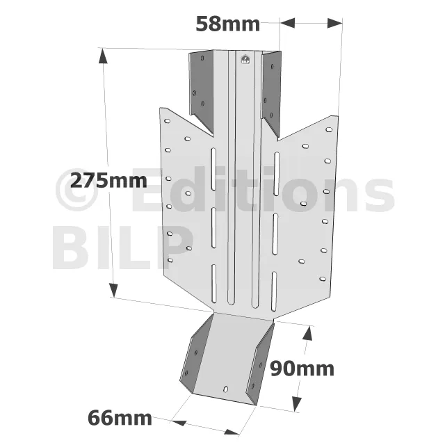 - Les trous oblongs permettent le clouage en biais si nécessaire.