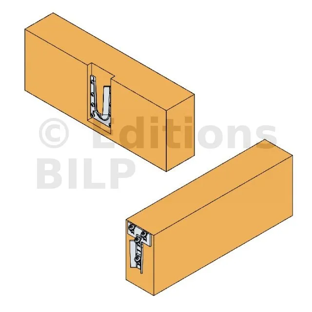L’étrier à queue d’aronde en acier ETSN est un connecteur innovant et très discret. Il permet de reproduire l’esthétique d’un assemblage traditionnel à queue d’aronde. La partie femelle est placée sur la poutre porteuse avec des vis CSA ou des pointes CNA, tandis que la partie mâle est fixée à l’extrémité de la poutre portée avec les vis à tête plate.