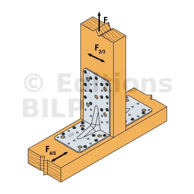- Fixation BOIS/BOIS - clouage total2 équerres ; Aile A : 12CNA Ø4.0x35 ou Ø4.0x50 mm ; Aile B : 14CNA Ø4.0x35 ou Ø4.0x50 mm