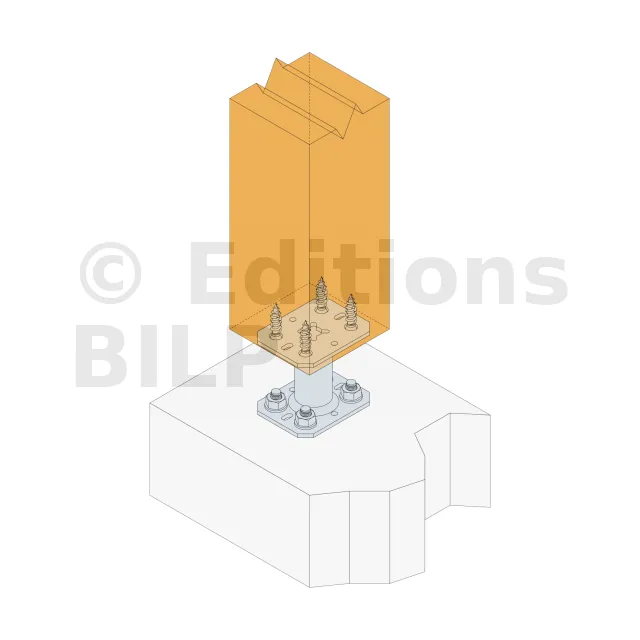 2. Fixer cette platine au poteau à l’aide de tirefonds LAG (Pré-perçage nécessaire)