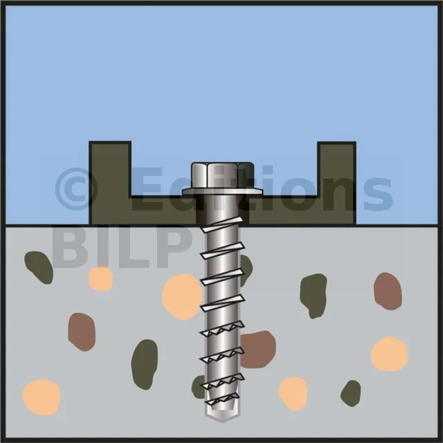La vis béton à tête hexagonale avec embase est un système de fixation par verrouillage de forme pour charges lourdes dans le béton fissuré et non fissuré. Elle permet une mise en œuvre plus rapide que les chevilles standards pour des applications permanentes ou provisoires. Le filetage en dents de scie assure un accroche très performante.