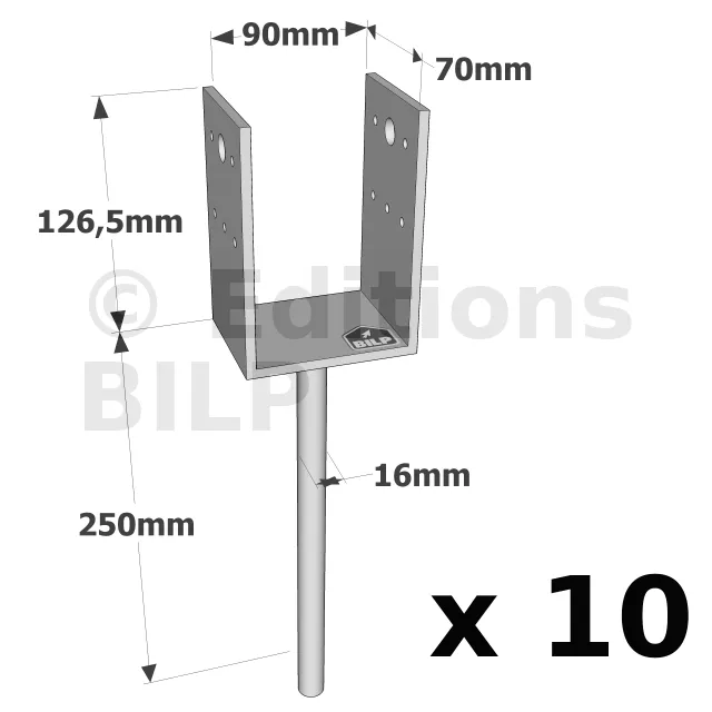 Pieds de poteau en U à sceller - Réf. PPD90/70G_10