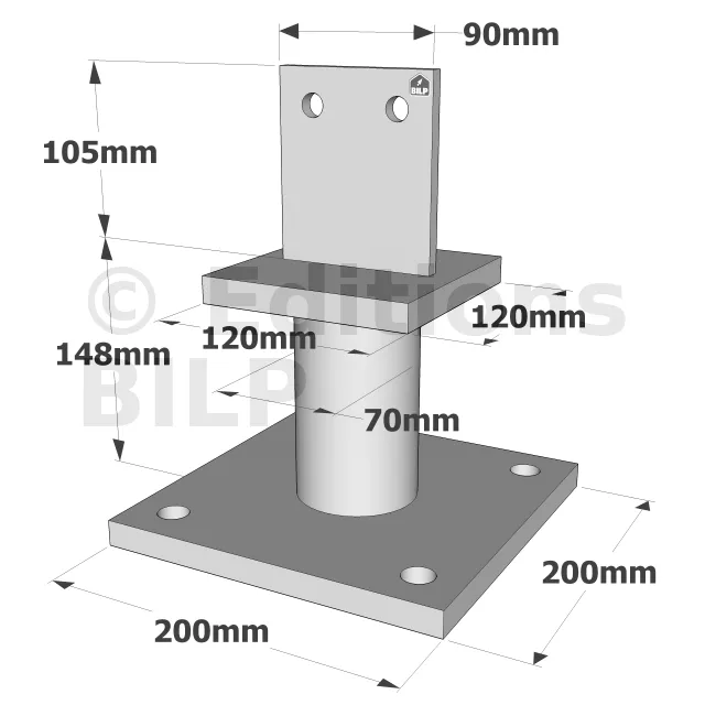 Le pied de poteau PISBMAXIG-K permet une reprise de charge en compression jusqu’à 9 tonnes en valeur design ainsi que des efforts de soulèvement grâce à son âme verticale. Il doit être boulonné sur un support rigide de type béton. Il est proposé en kit avec quatre goujons WA M16-151/30.