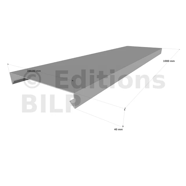 Couvertine d’acrotère plate - Gamme 280 - Aluminium 15/10 - Longueur 1000mm - Réf. CP15-280-1000