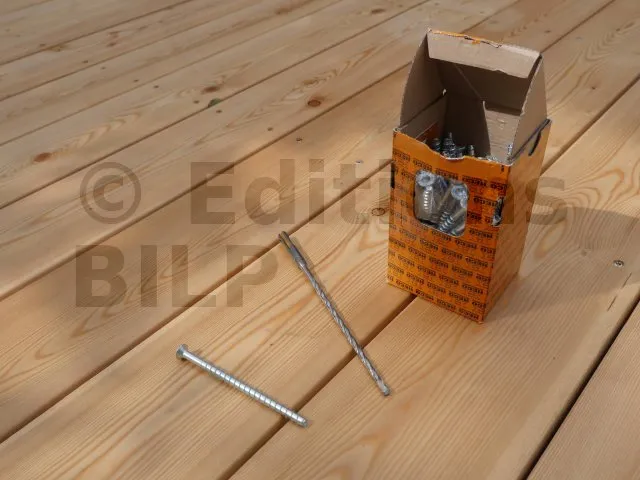 - Vis composée de deux filets, la partie inférieure est destinée pour rentrer dans le béton et la partie supérieure pour rentrer dans le bois.