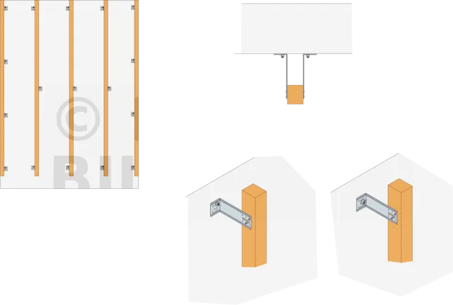 - Fixation de chevrons pour bardages extérieurs (minimum de section 40x63 suivant Cahier CSTB 3316)