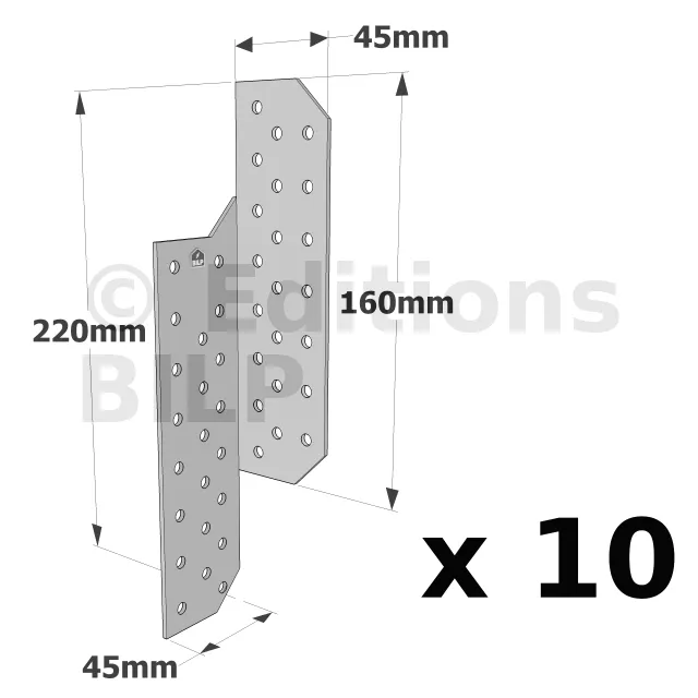 Patte de solivage GAUCHE - 45x220x2mm - Réf. PSG220/45/2_10