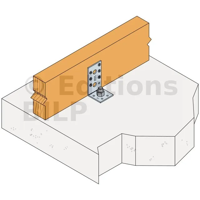 - Fixation bois/support rigide - type poutre/support rigideAile B : 7 - type : CNA Ø4.0x35 ou Ø4.0x50 mm ; Aile C : 1 - type : WA M10-78/5 - Assemblage avec 2 équerres