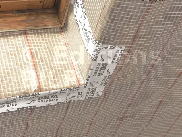 Les feuilles à assembler doivent être posées et fixées sans tensions ni plis et les recouvrements intégralement collés sans tensions ni contraintes de cisaillement ou de pelage. La température du support doit être supérieure à + 5 °C. La bande adhésive doit être tempérée avant utilisation. Il faut s’assurer qu’aucune contrainte n’apparaisse après le collage, par exemple à la suite de la Mise en œuvre d’un lattage sous un pare-vapeur pour éviter un affaissement. Le collage optimal est obtenu lorsqu’une pression homogène est exercée sur la bande adhésive à l’aide d’accessoires adaptés, par exemple un rouleau à maroufler. Ne pas coller sur des parties qui resteront visibles DELTA®-MONO-BAND ne pourrait plus que difficilement décollée.