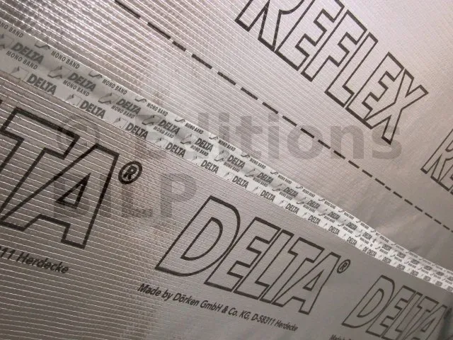 Bande adhésive armée avec film pelable en sous-face. Pour le collage des recouvrements entre lés de pare-vapeur.