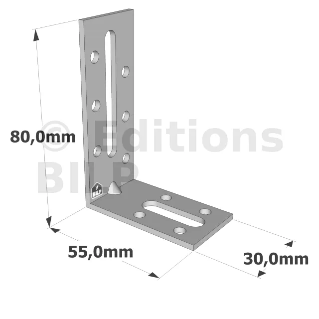 - Trous oblongs facilitant l’ajustement des assemblages,