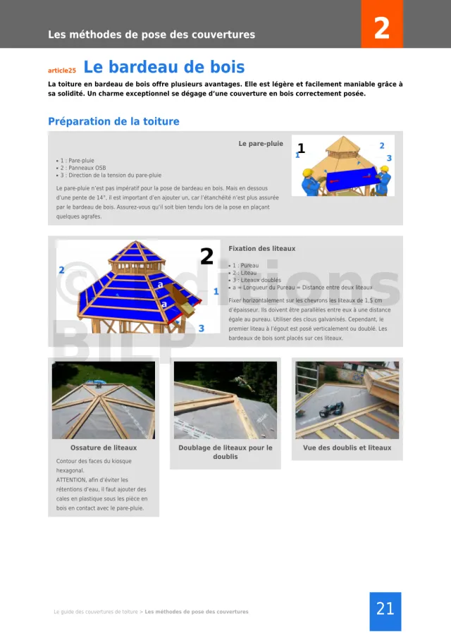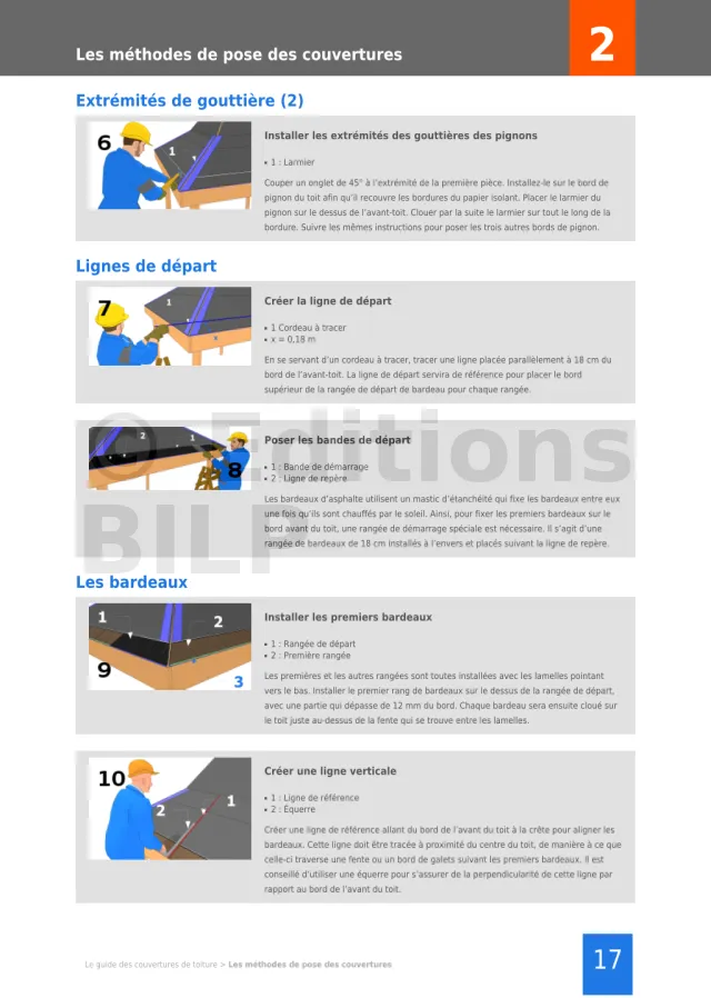 Des informations concrètes pour votre projet. Tous les secrets, tous les trucs et les astuces pour réussir la pose de votre des couvertures de votre toiture. Toutes les techniques, tous les types de couvertures vous sont décrits de façon objective et indépendante. Des vues détaillées vous décrivent toutes les étapes de la pose.
