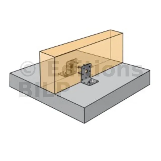 - Fixation bois/support rigide - type poteau/support rigideAile B : 11 - type : CNA Ø4.0x35 ou Ø4.0x50 mm ; Aile C : 1 - type : WA M10-78/5 - Assemblage avec 2 équerres