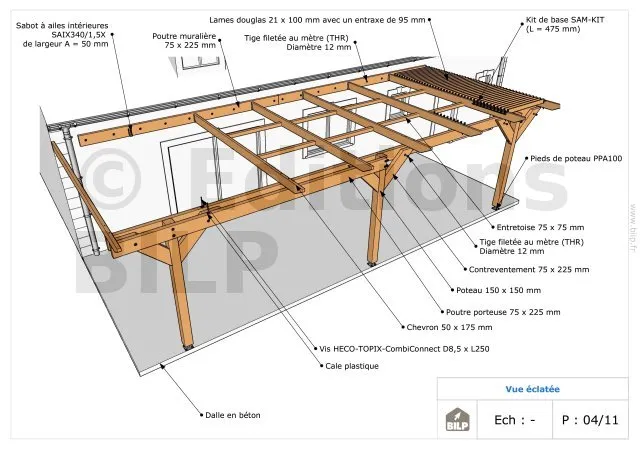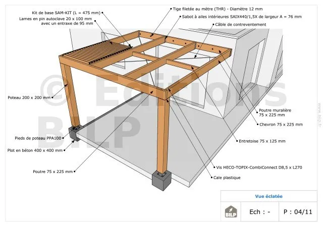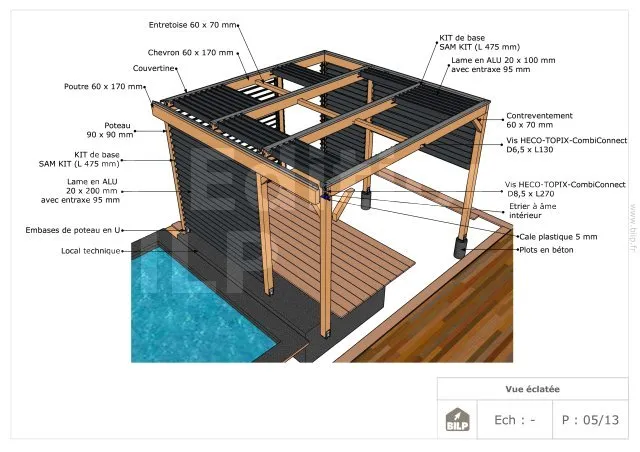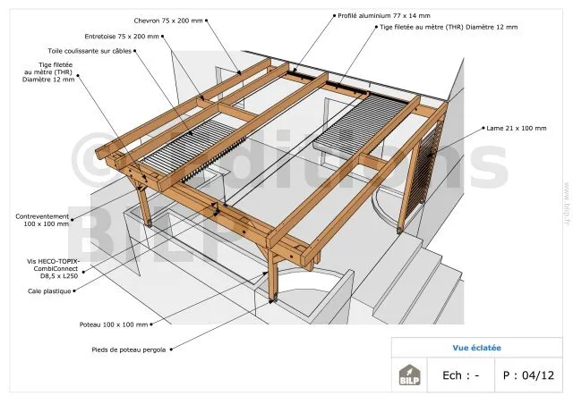 Vous aurez une vue éclatée qui vous permettra de distinguer tous les éléments constituants votre pergola.