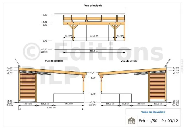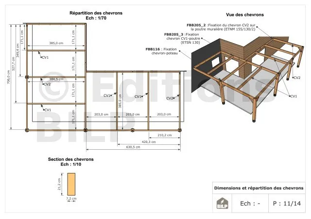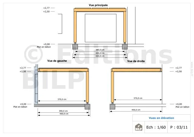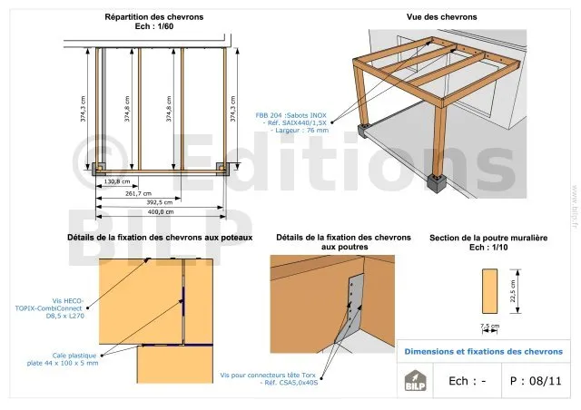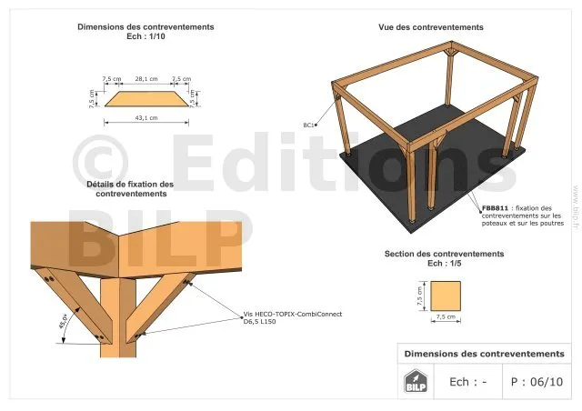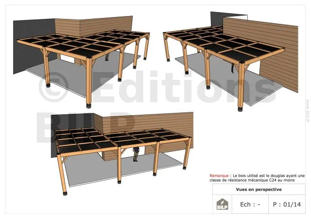 Les plans de structure à l’échelle sont faciles à lire et à comprendre. Ils vous permettrons de réaliser vous-même la structure de votre pergola. Les détails de réalisation sont indiqués. Nous calculons et optimisons les dimensions et les sections de pièces de bois.