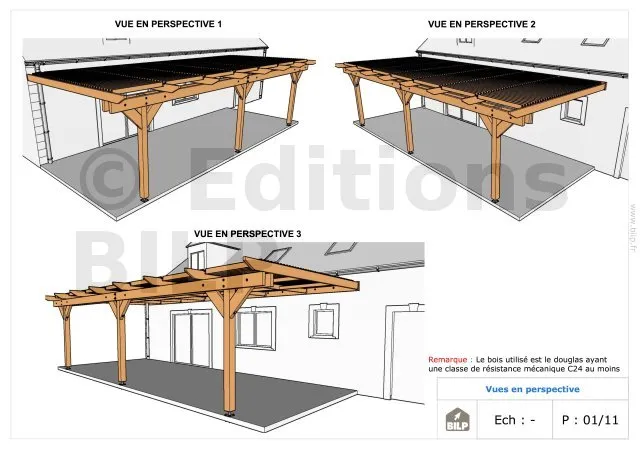 Nous réalisons tous types de Plans de Pergola selon vos mesures et vos désirs. Ce dossier TECHNIQUE vous servira à CONSTRUIRE votre pergola vous-même.