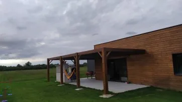 je peux vous l’envoyer GRATUITEMENT au format PDF. Il s’agit du dossier de conception d’une PERGOLA bioclimatique en ossature-bois. Peut-être que cela vous inspirera pour votre projet.