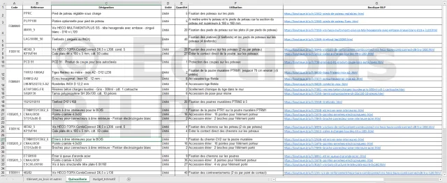 - une nomenclature des matériaux, c’est-à-dire votre liste des courses,