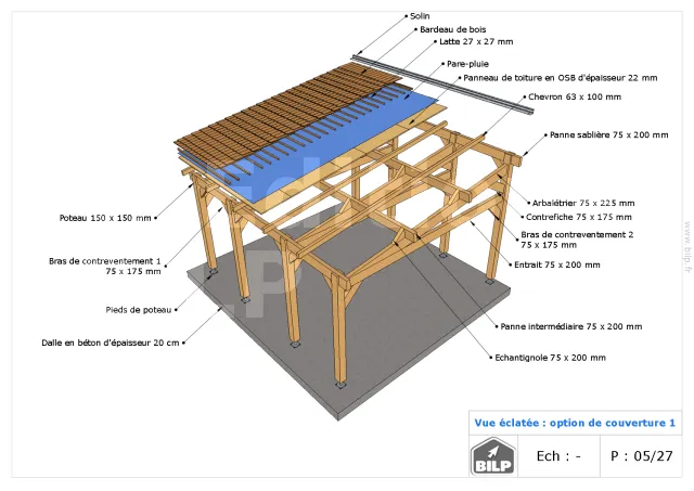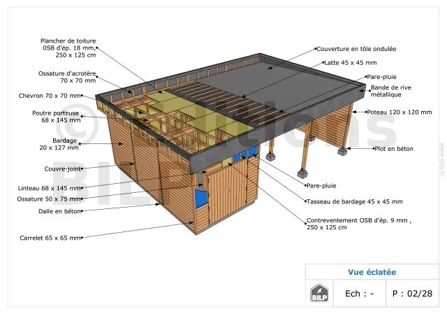 je peux vous l’envoyer GRATUITEMENT au format PDF. Il s’agit du dossier de conception d’un CARPORT en ossature-bois. Peut-être que cela vous inspirera pour votre projet.