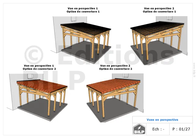 Nous réalisons tous types de Plans de Carports, Garages ou Préaux selon vos mesures et vos désirs. Ce dossier TECHNIQUE vous servira à CONSTRUIRE votre projet vous-même.