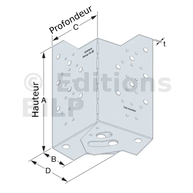 Équerre réglable pour dalle bois - Fixation poutre bois de hauteur 235 à 310mm - Réf. ABF230